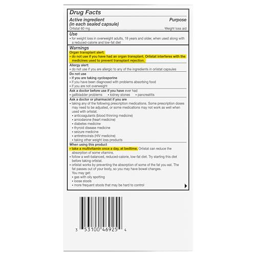 alli (orlistat 60 milligram capsules) is your smart edge for weight loss. Among weight loss products, it’s Orlistat, the active ingredient in alli, is a lipase inhibitor and works by binding to specific enzymes that break down fats. As a result, about 25 percent of the fat you consume is not absorbed and passes through the digestive system. Since the calories associated with this unabsorbed fat are not used, the number of calories that enter your system is reduced. You’re ready with alli by your side. alli (orlistat 60 milligram capsules) is a weight loss aid for overweight adults, 18 years and older, when used along with a reduced calorie and low fat diet. Read and follow label directions. alli orlistat 60 mg capsules weight loss pill refill pack (120 capsules) contains: A read me first brochure and up to 40 day supply. It is designed for people who are already using alli and have previously purchased the starter pack. Helps you lose more weight than dieting alone. Read the enclosed brochure for other important information. Diet and exercise are the starting points for any weight loss program. If you have a product concern or any other question, please refer to the phone number on the package to reach our customer service team directly. Satisfaction Guarantee If for any reason you are not satisfied with any GSK Consumer Healthcare product, GSK Consumer Healthcare will provide you with a reimbursement within 45 days of the date of purchase. Please note that because GSK is unable to control the quality of our products sold by unauthorized sellers, the Guarantee is not available for products purchased from unauthorized sellers due to potential quality issues outside GSK’s control. Please contact GSK Consumer Healthcare directly for more information. By Alli